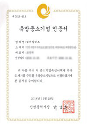 유망중소기업 인증서